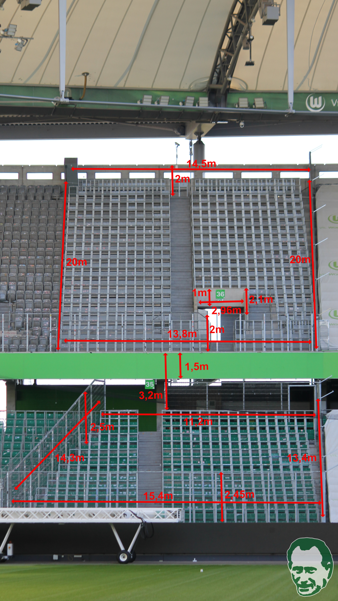 Um allen Gästefans eine unkompliziertere Planung für den Gastauftritt zu ermöglichen, findet ihr anbei alle wichtigen Maße des Gästeblocks des Stadions im Allerpark.